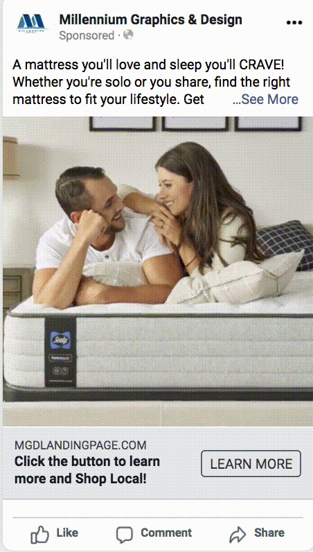 We run Facebook ads and Google Responsive Display Ads. These Ads build engagement in tandem with National Tempur Sealy promotions.